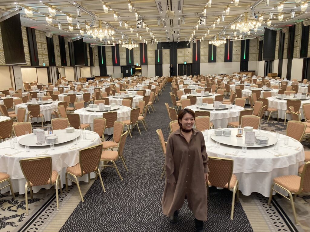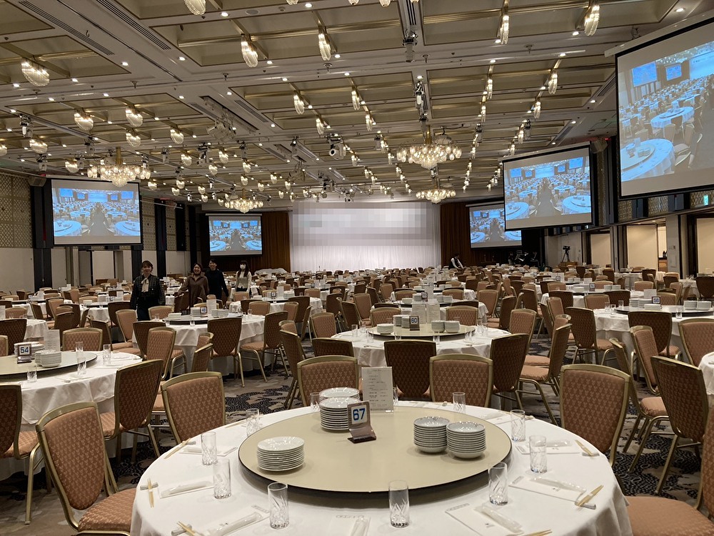 宴会場を隅から隅まで埋め尽くすテーブル。