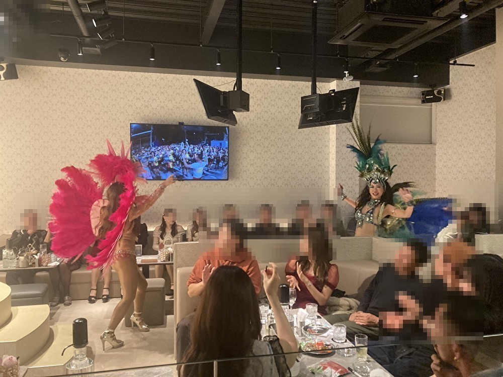 お客様のみならずキャストのお姉さんもステージに上がっていただき、皆で大騒ぎのサンバショーでした!